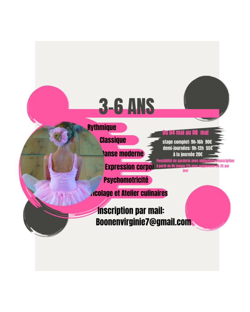 Offrez à vos enfants une parenthèse créative et sportive lors de nos stages de danse du 4 au 8 mai 2026. Nous proposons deux programmes adaptés selon l’âge pour découvrir différents styles de danse dans une ambiance bienveillante.