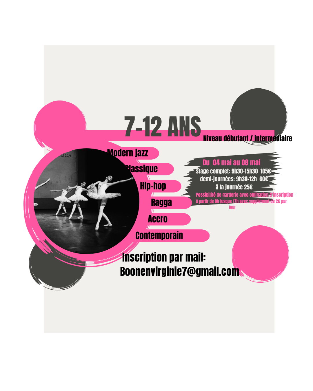 Les inscriptions se font par mail : boonenvriginie7@gmail.com